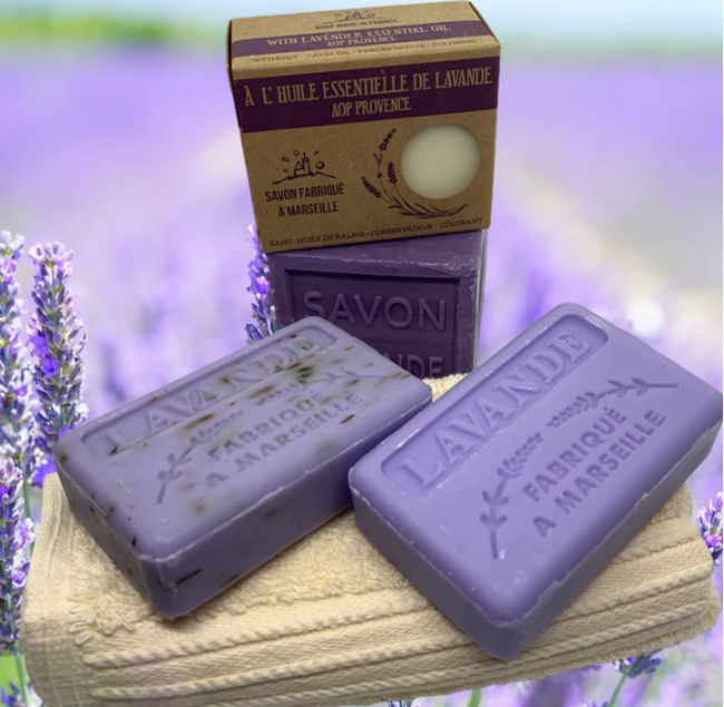 Indulge in the luxury of Provence with the Ultimate Lavender Soap Gift Set. This 7-piece collection transforms everyday skincare into a pampering ritual, featuring a lavender soap bar, exfoliating soap, lait d’ânesse, AOP bar, 300 g lavender cube, guest soap, and a bamboo face cloth.